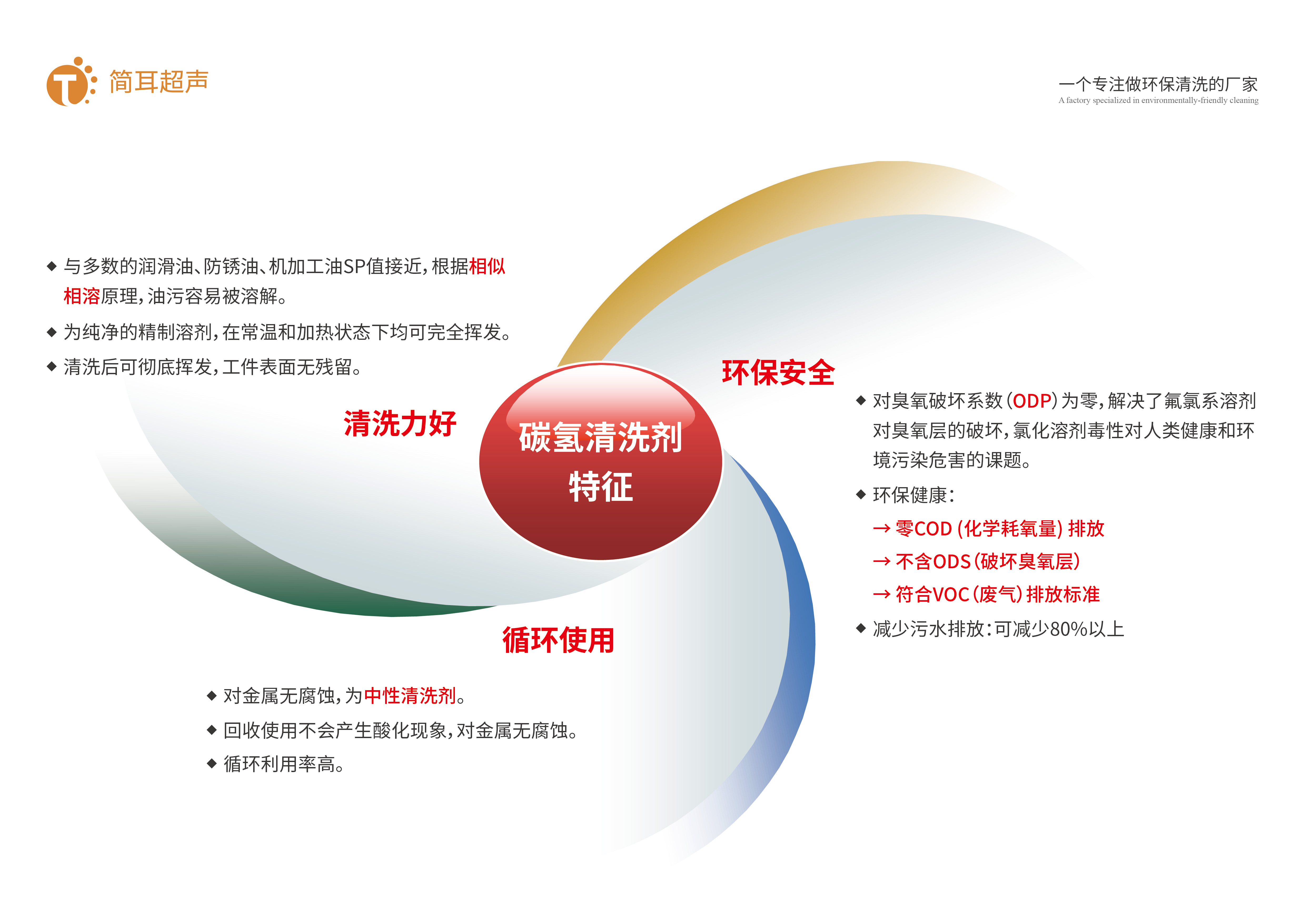 2、与传统的水基清洗剂对比,碳氢清洗没有污水排放、废液处理简单、VOCs排放符合国家标准、能通过蒸馏循环使用。