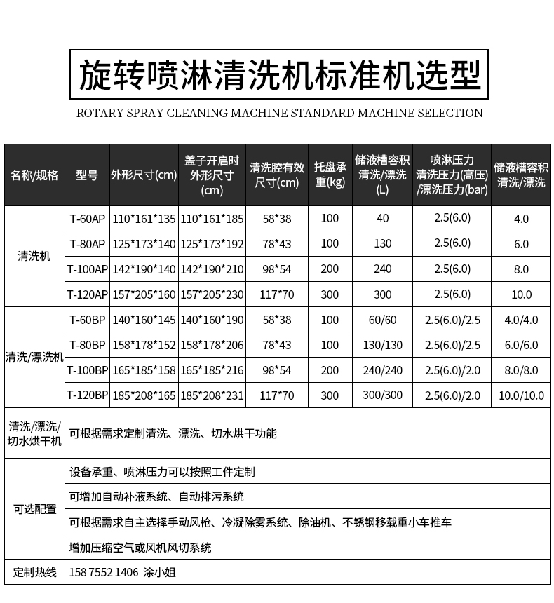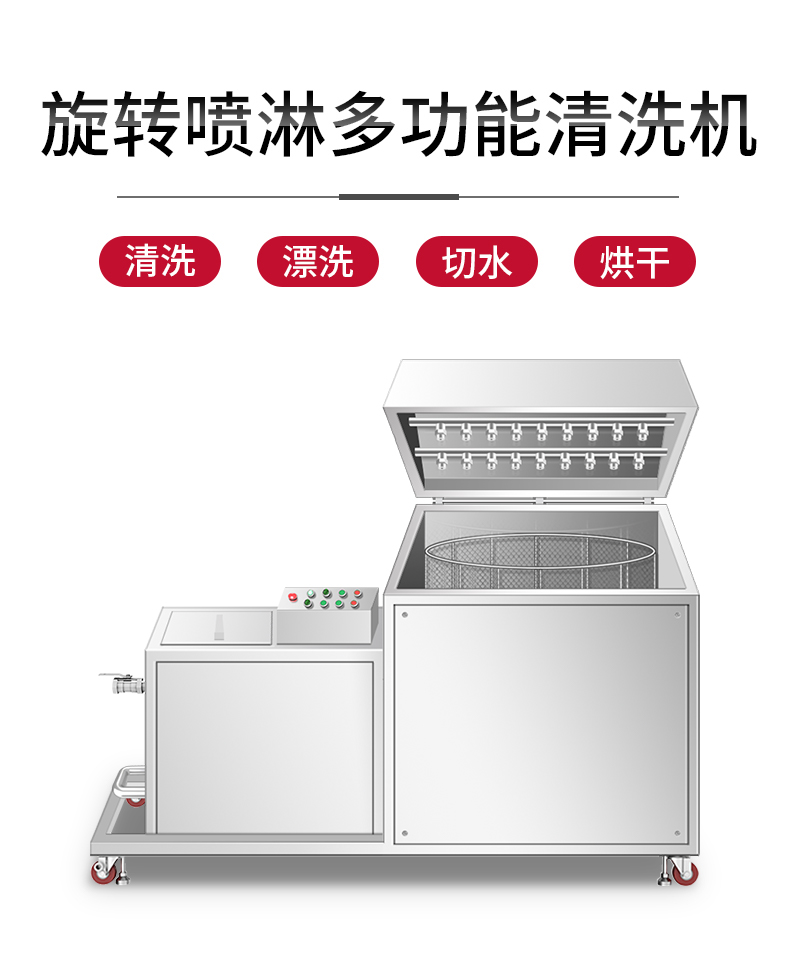 1、主要功能:人工/机械手将工件放在清洗转盘工装夹具上,采用转盘旋转喷淋清洗方式,风切烘干可选;