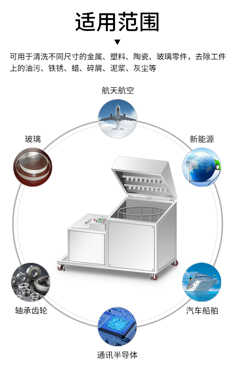 4、清洗工件:外形相对简单的各种零件,特别适合平板类零件如:结构件、平板类、盘类;