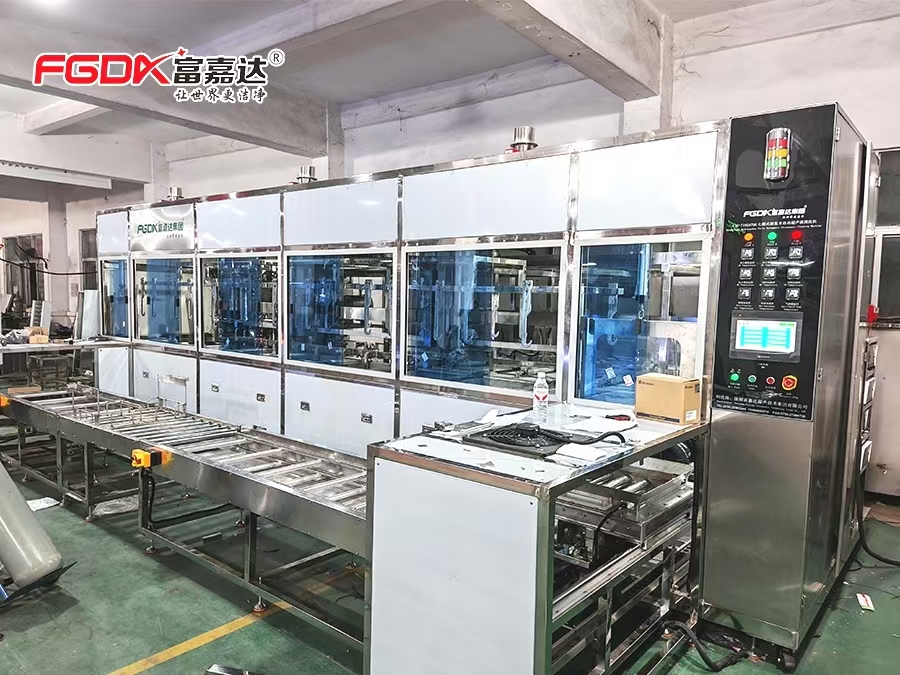 FJD-10438ASG真空PVD镀膜涂层前处理十槽全自动超声波清洗机广泛用于:微型钻头、合金钻头、铣刀以及各种精密刀具等进行PVD涂层前清洗/抛光后清洗。