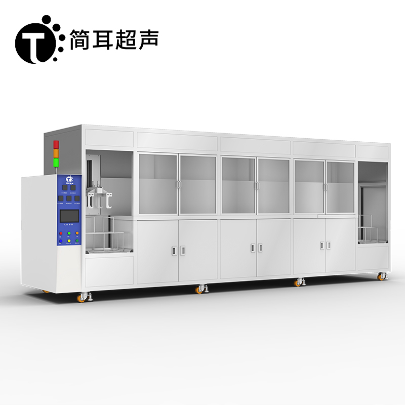 设备描述:清洗过程由PLC程序和工业监控人机界面触摸屏控制,多个由不锈钢材质制作的超声波清洗槽、热风干燥槽组成的一条连续工作装置,除上下料外,全程由机械手将清洗篮依次送往各工序段,对工件进行一系列清洗。